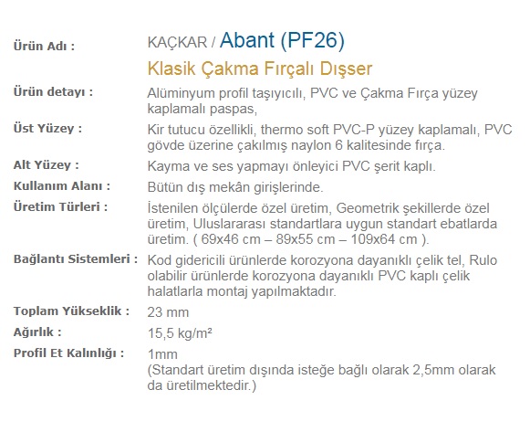 Abant (PF26) Ürün Özellikleri