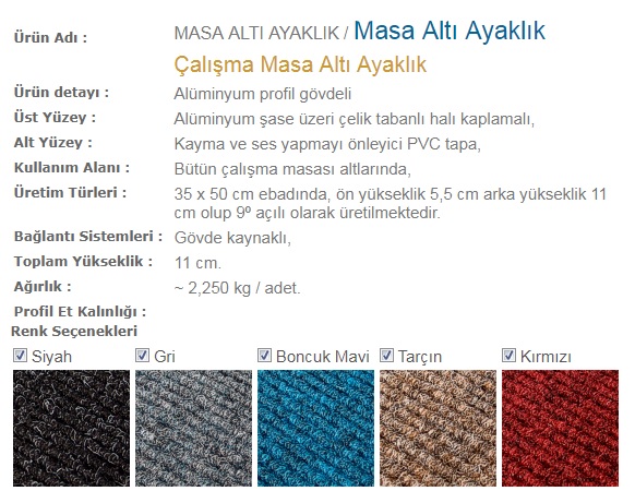 VİSPAS Çalışma Masa Altı Ayaklık Ürün Özellikleri