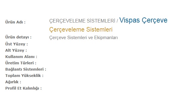 VİSPAS Çerçeve Ürün Özellikleri