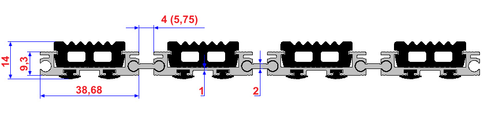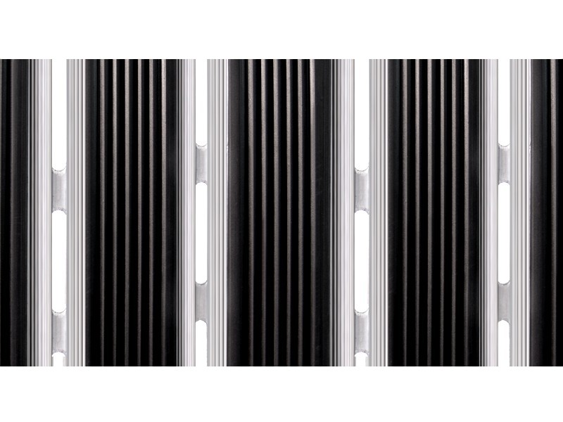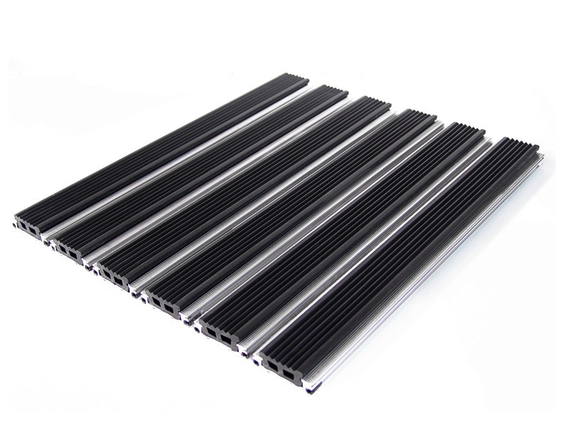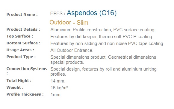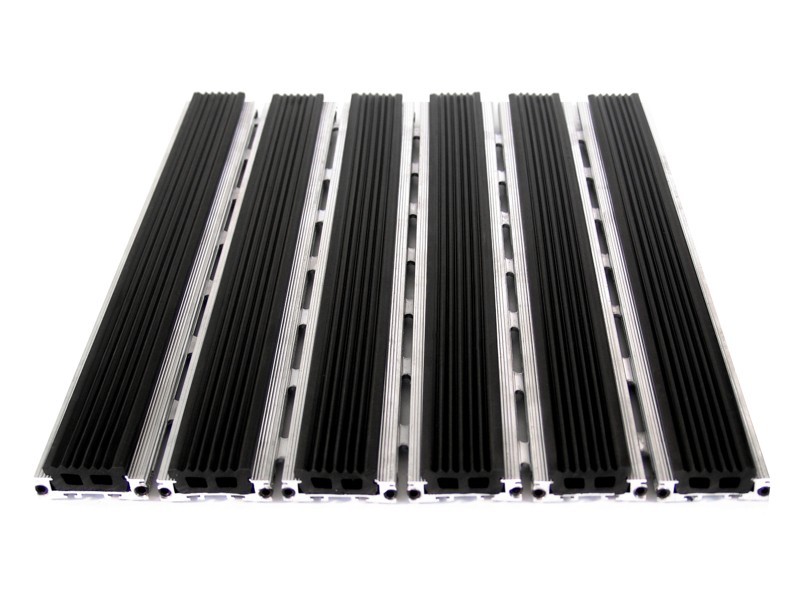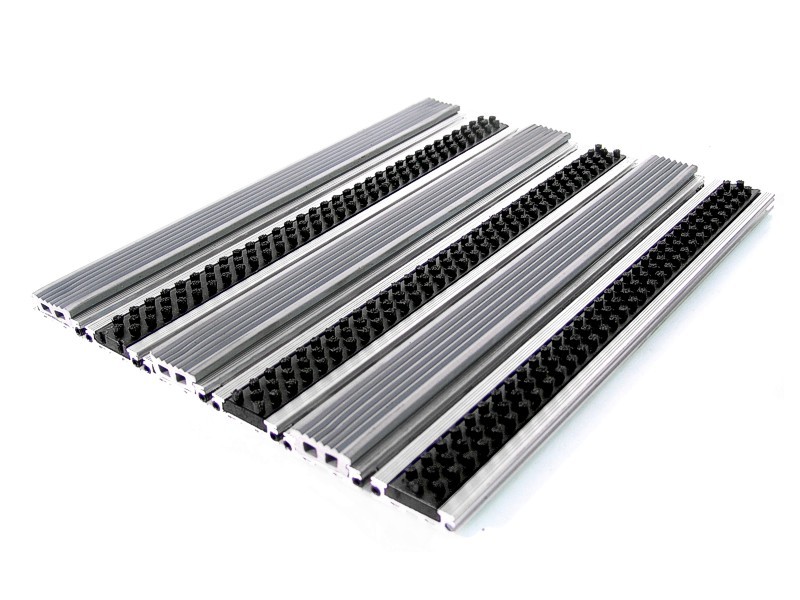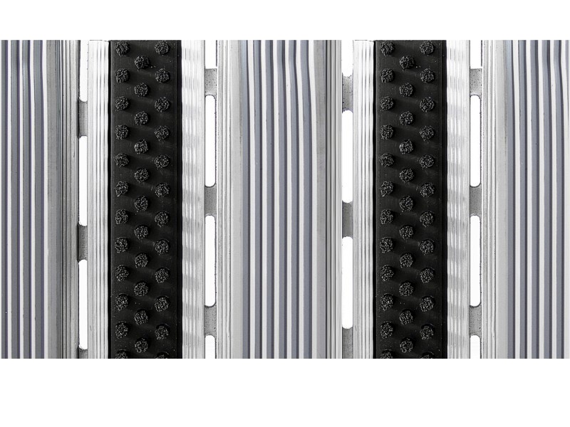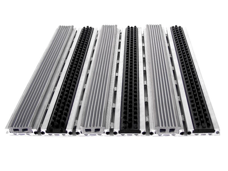Aluminium Profile construction, PVC surface coating. Features by dirt keeper, thermo soft PVC-P coating. Features by non-sliding and non-noise PVC tape coating. All Outdoor Entrances.