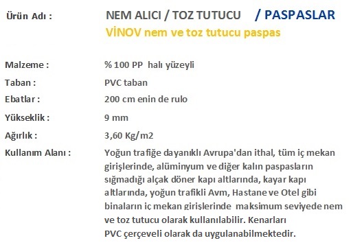 VİNOV Nem Alıcı Toz Tutucu Paspas Ürün Özellikleri