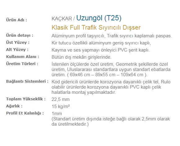 Uzungöl (T25) Klasik Full Trafik Sıyırıcılı Dışser